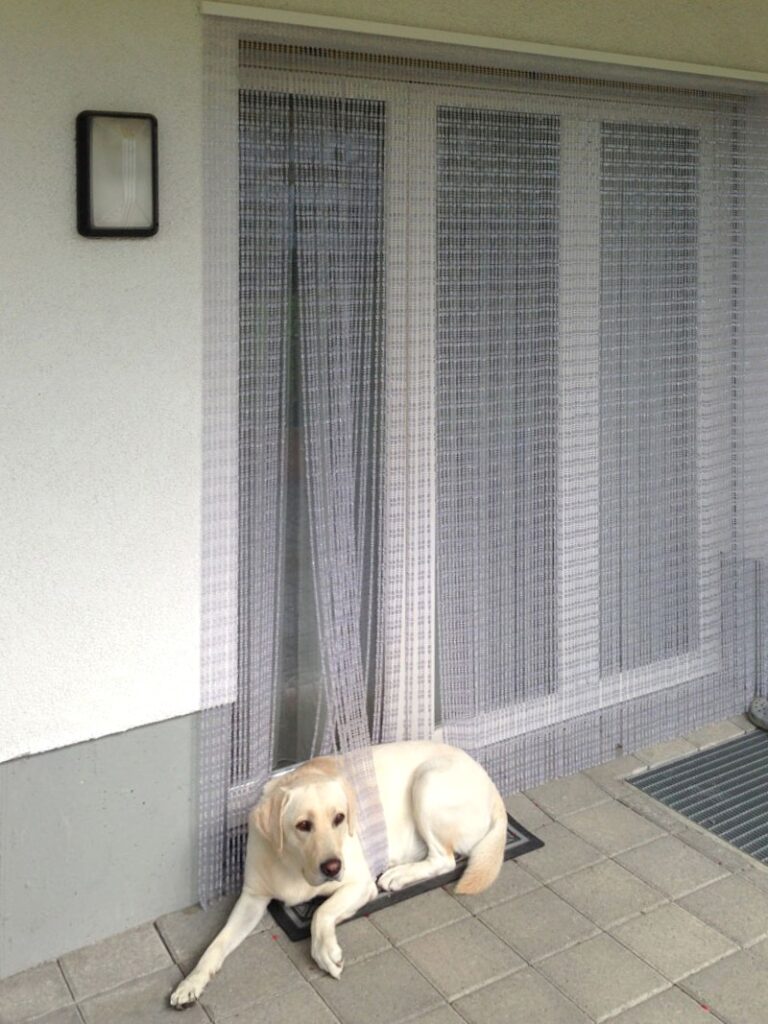 Der Fliegenvorhang überzeugt einerseits durch sein Aussehen und andererseits durch die einfache Passierbarkeit auch für Haustiere. Dank dem leichten Glitzern der Perlen bleiben die Fliegen fern.