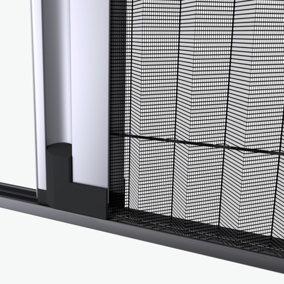 Dank der extra flachen Bodenführung lässt sich das Tür Plissee Max beinahe schwellenfrei verbauen. Durch die grösseren Falten bietet das Fliegengitter eine höhere Durchsicht. Bei Nichtgebrauch wird das Plissee Max einfach zusammengeschoben.
